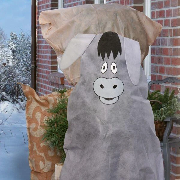 Een leuke vorsthoes die planten beschermt tegen uitdrogende wind en vorst. De beschermhoes heeft de vorm van een ezel en is daardoor ook heel decoratief.
